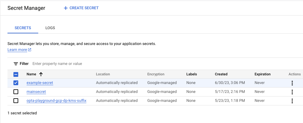 in your data plane GCP project (see Enabling GCP resources for details). - Go to Security > Secret Manager in the GCP project that contains your secret.